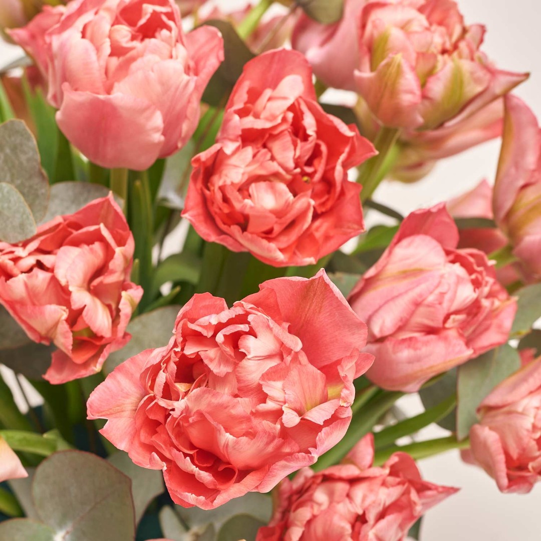 Склад: Тюльпан піоновидний( 35 шт.,), евкаліпт, кашпо керамічне d12
