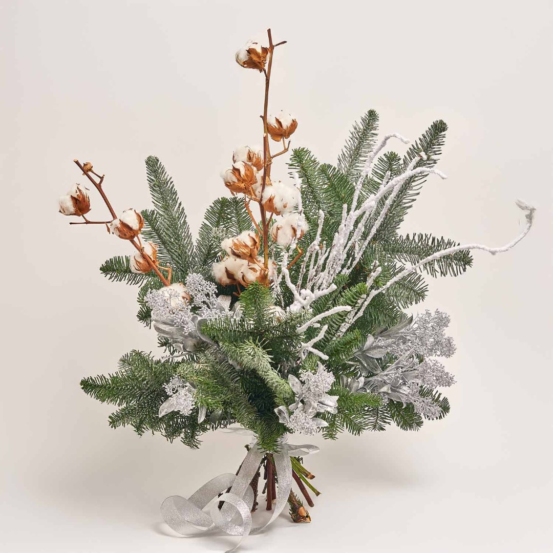 Склад: Нобіліс (4 шт.), Коттон (3 шт.), Гілка засніжена (8 шт.), Скімія фарбована (4 шт.).