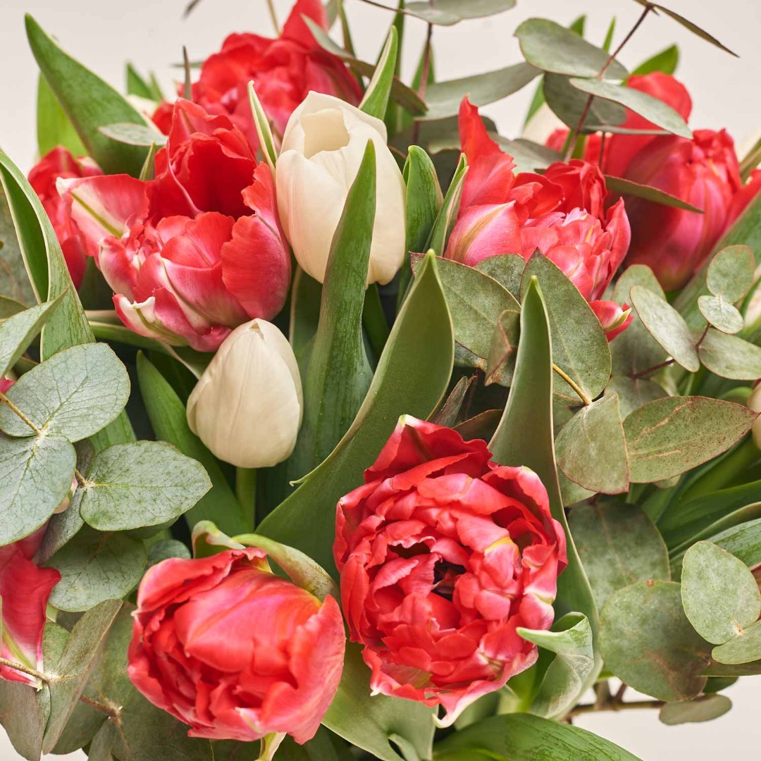 Состав: Тюльпан (25шт.,), Эвкалипт, кашпо керамическое d12