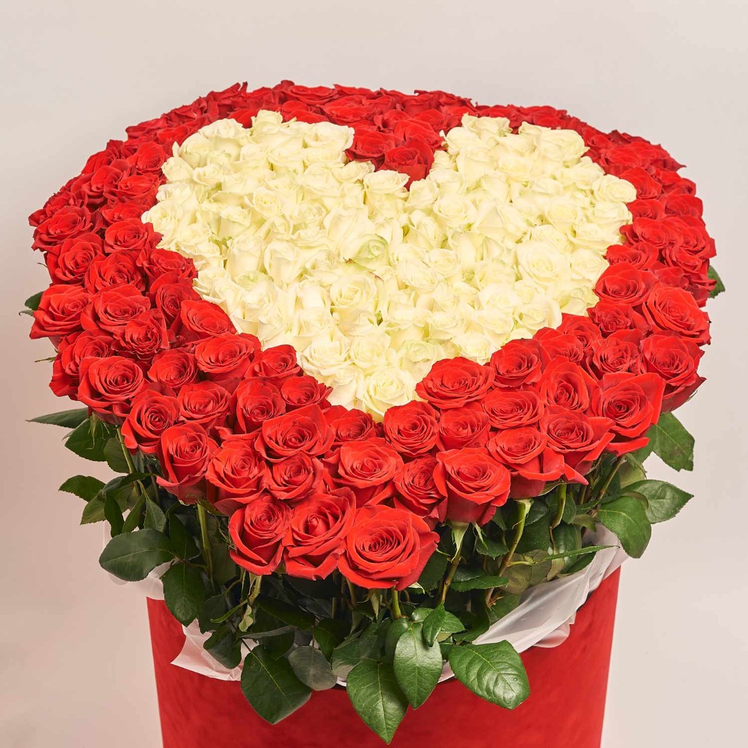 Состав: Роза (201 шт.), Коробка 50 см. * 50 см.